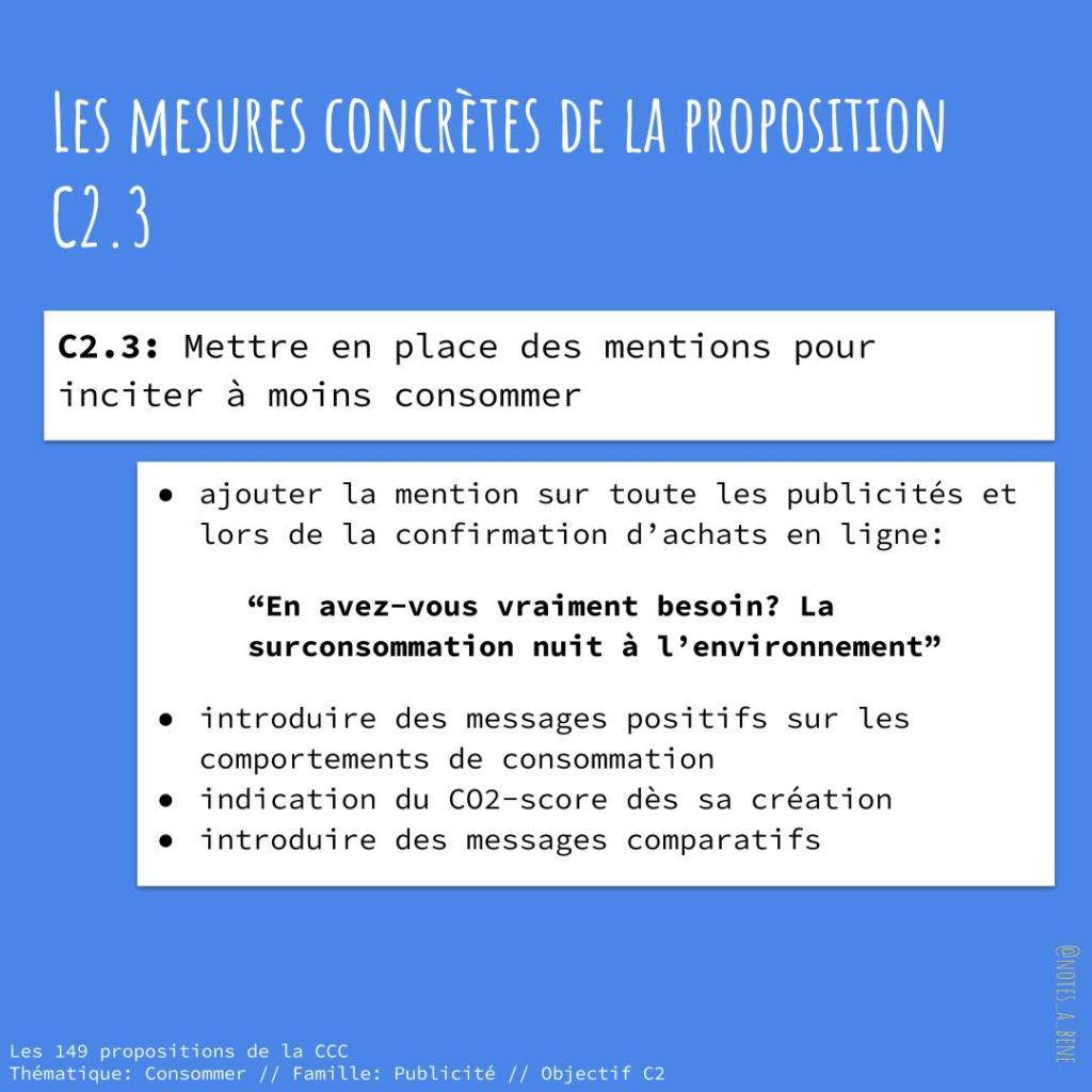 Enfin, parlons des mentions pour inciter à moins consommer: c’est ma proposition préférée (C2.3)