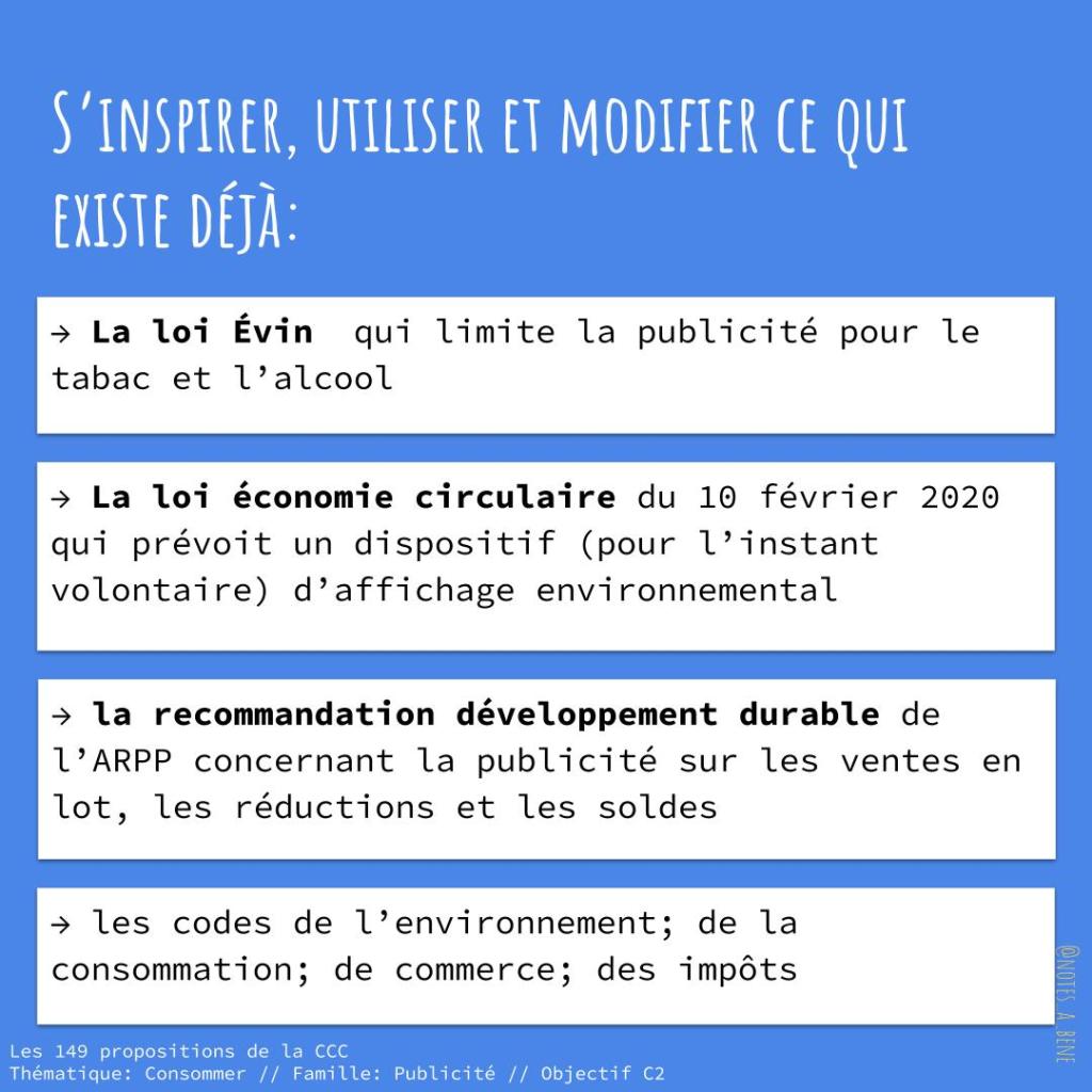 - proposition C2.2: Réguler la publicité pour limiter fortement les incitations quotidiennes et non choisies à la consommation.